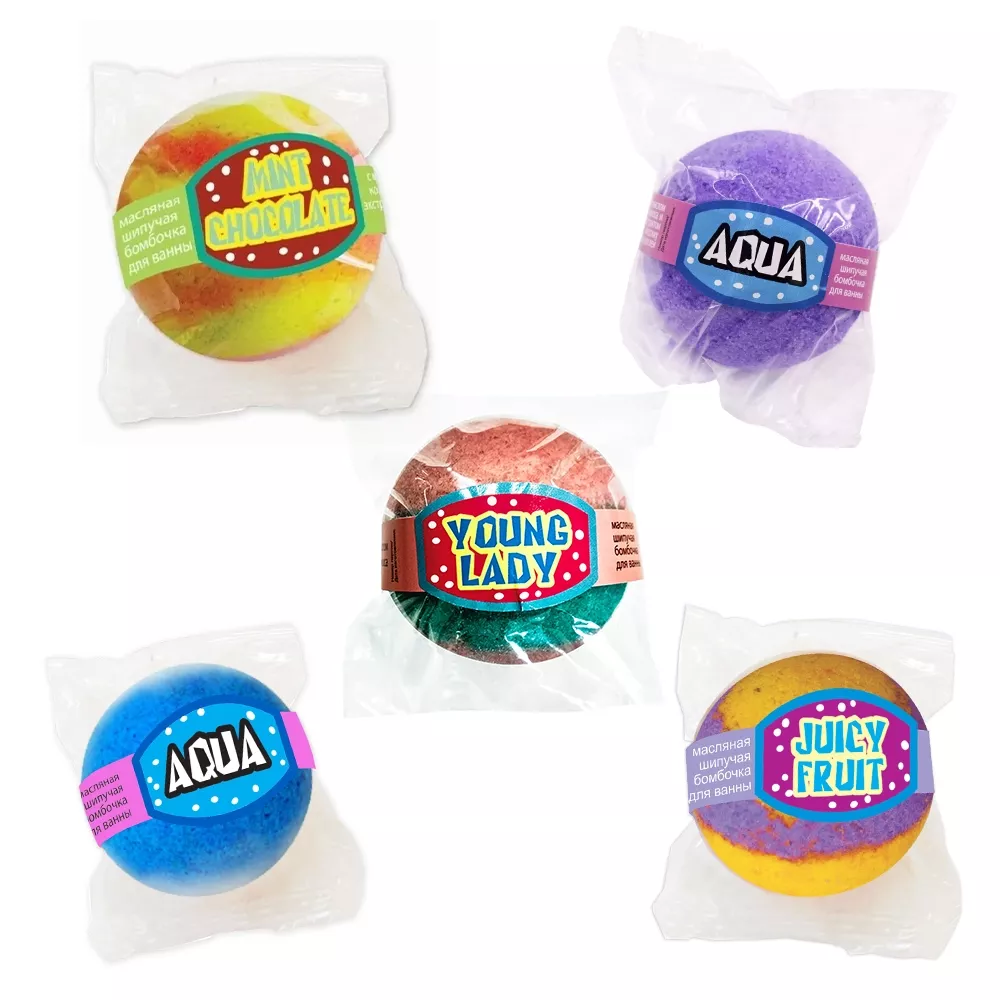 Соль шипучая «Spa by Lara» для ванн Ассорти Масляная бомбочка 40 гр х 24 шт.