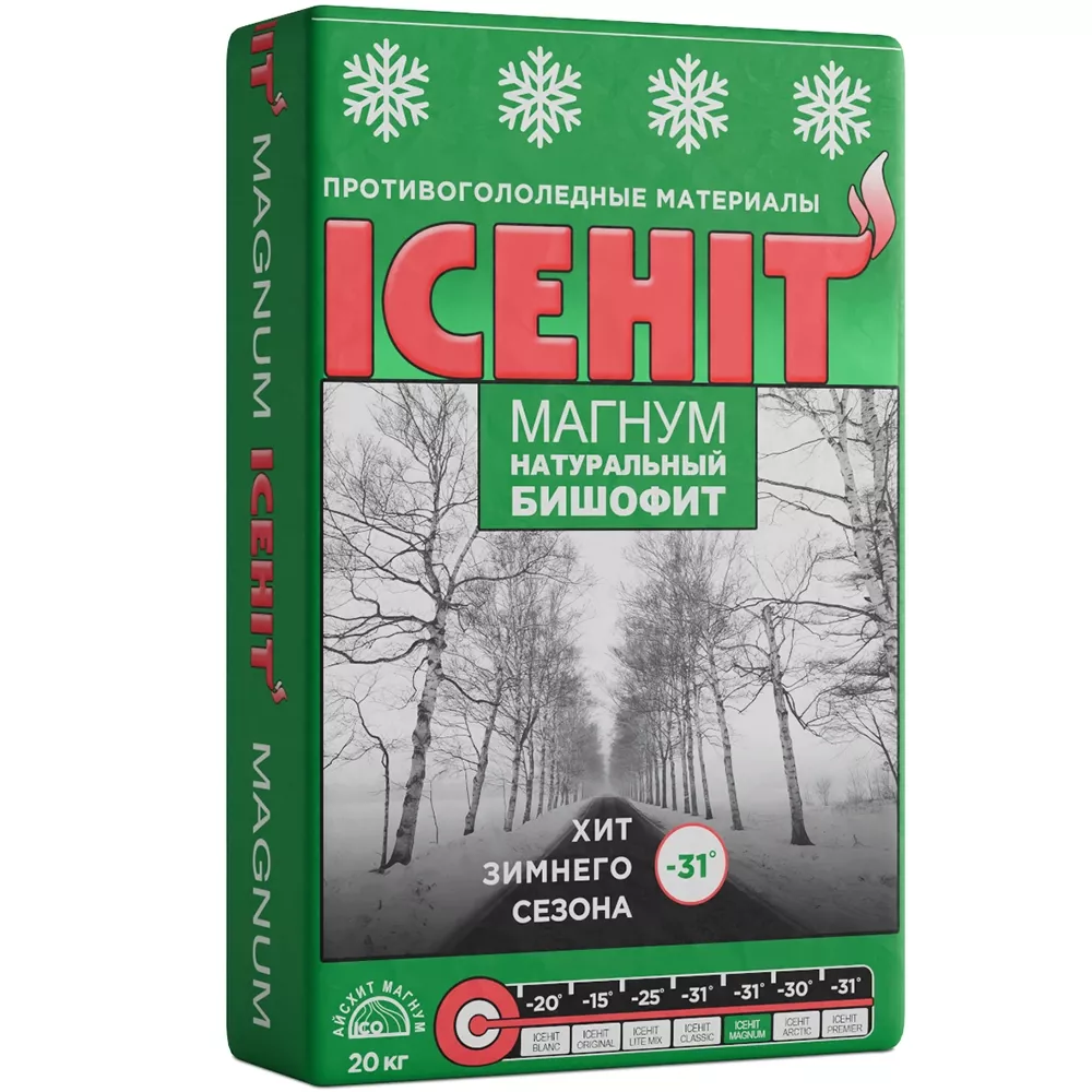Противогололедный реагент «Icehit» Magnum (применяется при температуре до -31 градуса) 20 кг.