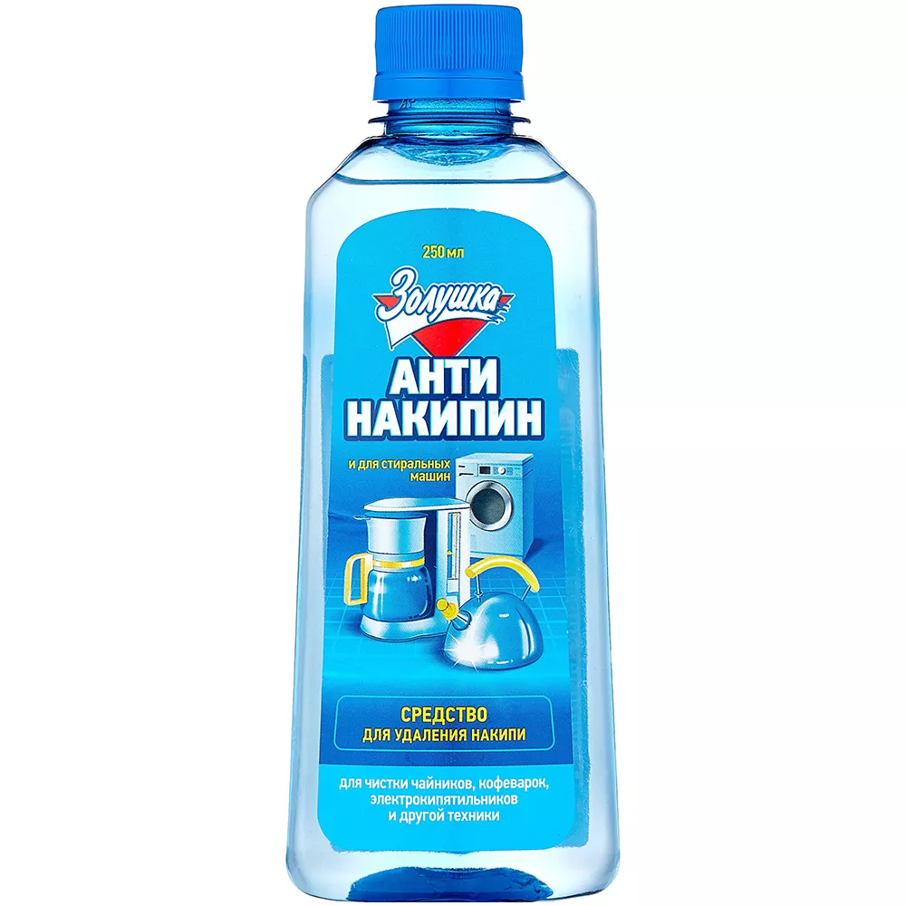 Высокоэффективное средство «Антинакипин Золушка» предназначено для удаления известковых отложений и накипи с чайников, электрокипятильников, кофеварок и других электронагревательных приборов.
