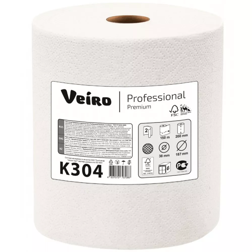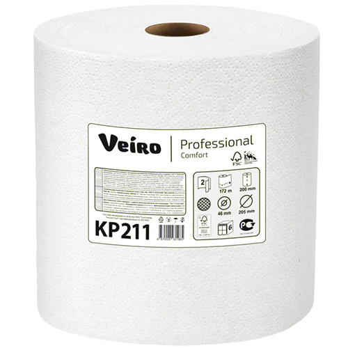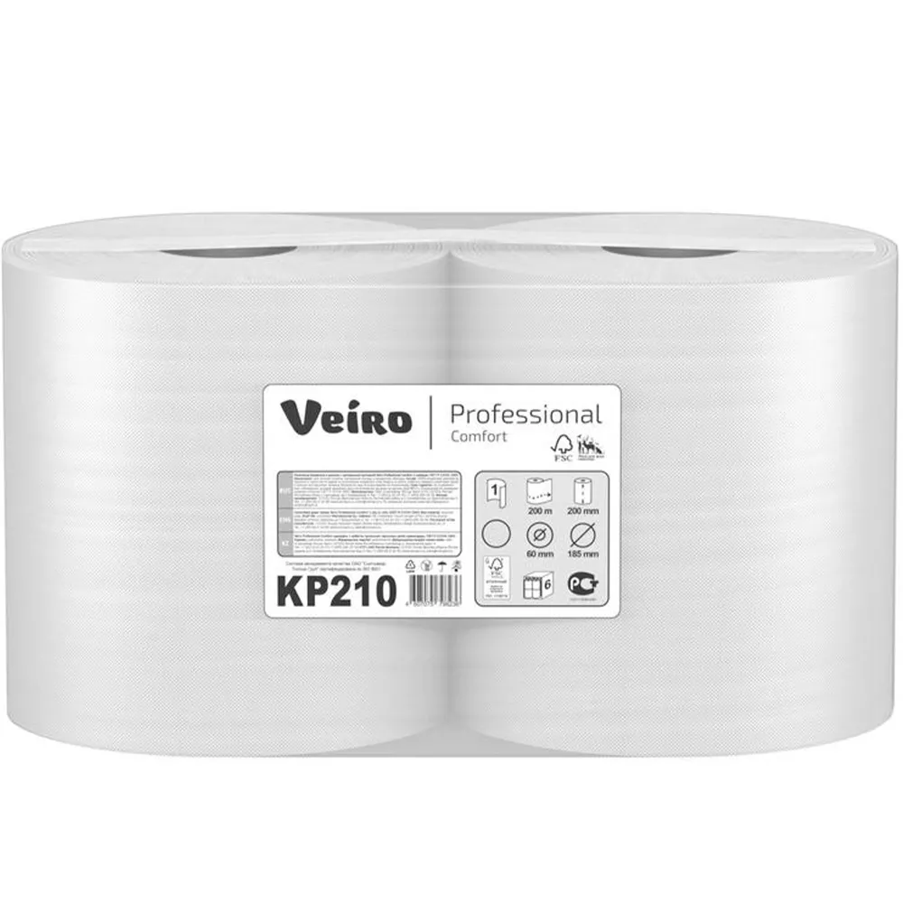 Полотенца бумажные «Linia VEIRO» Prof Comfort с центральной вытяжкой белые 1сл 200м 2 шт.