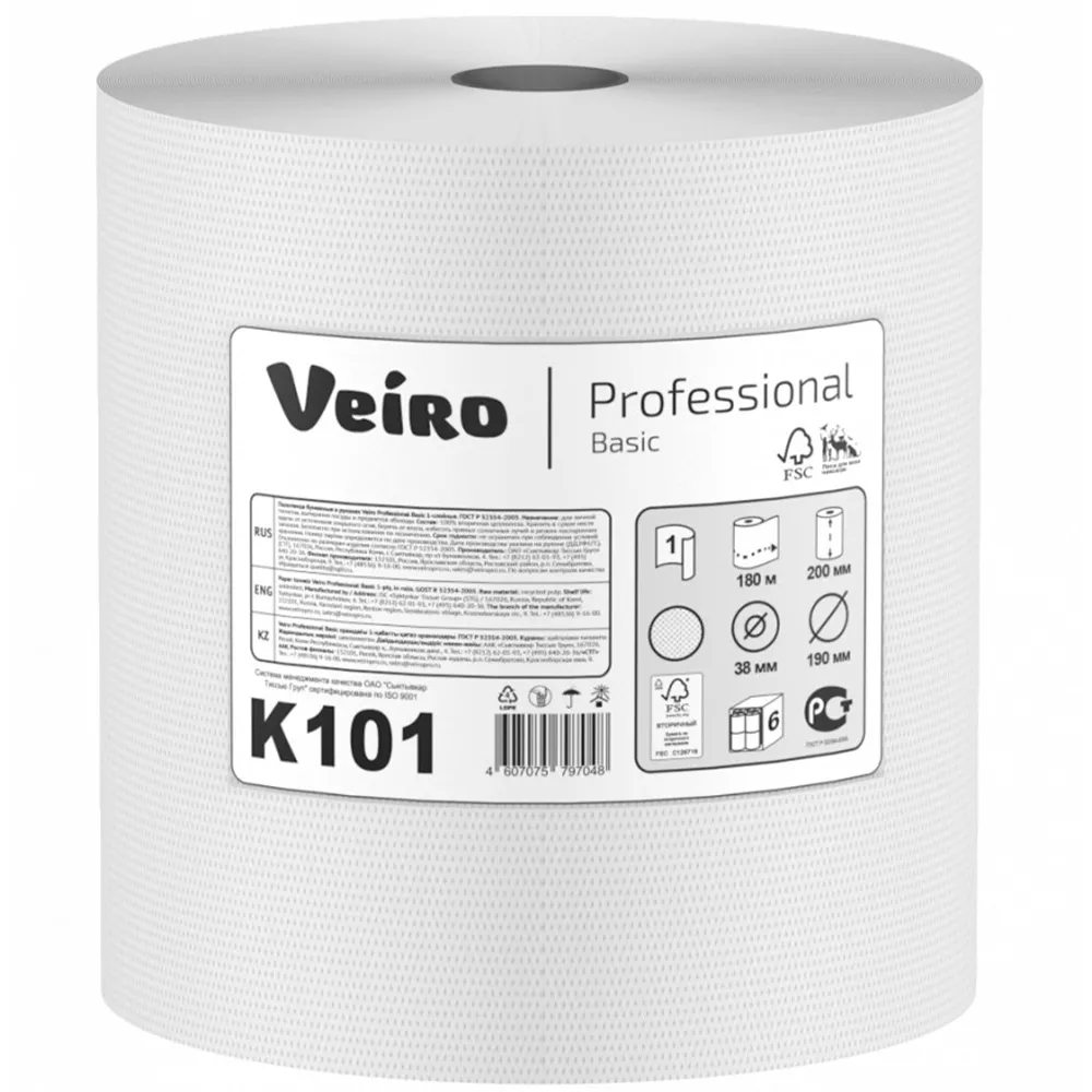 Полотенца бумажные «Linia Veiro» Prof Basic 1сл в рулонах 180 метров