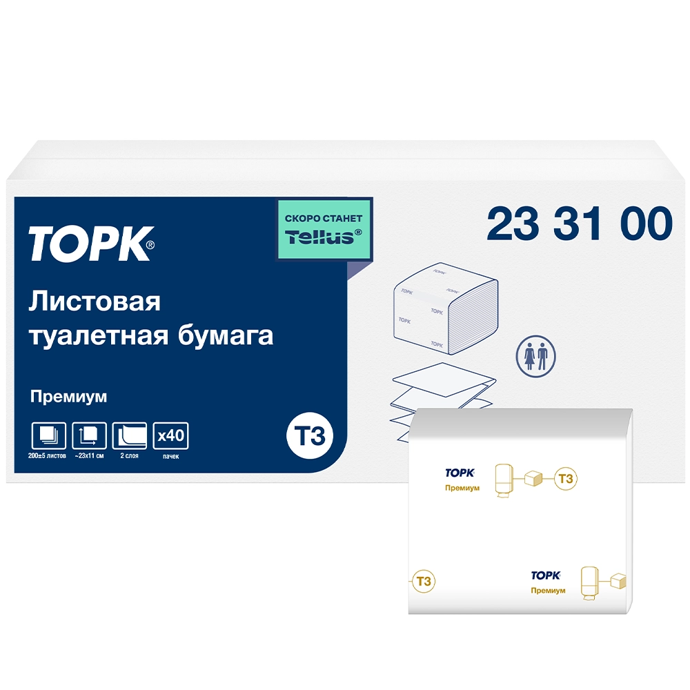 Туалетная бумага листовая «Tork» Премиум двухслойная 200 листов