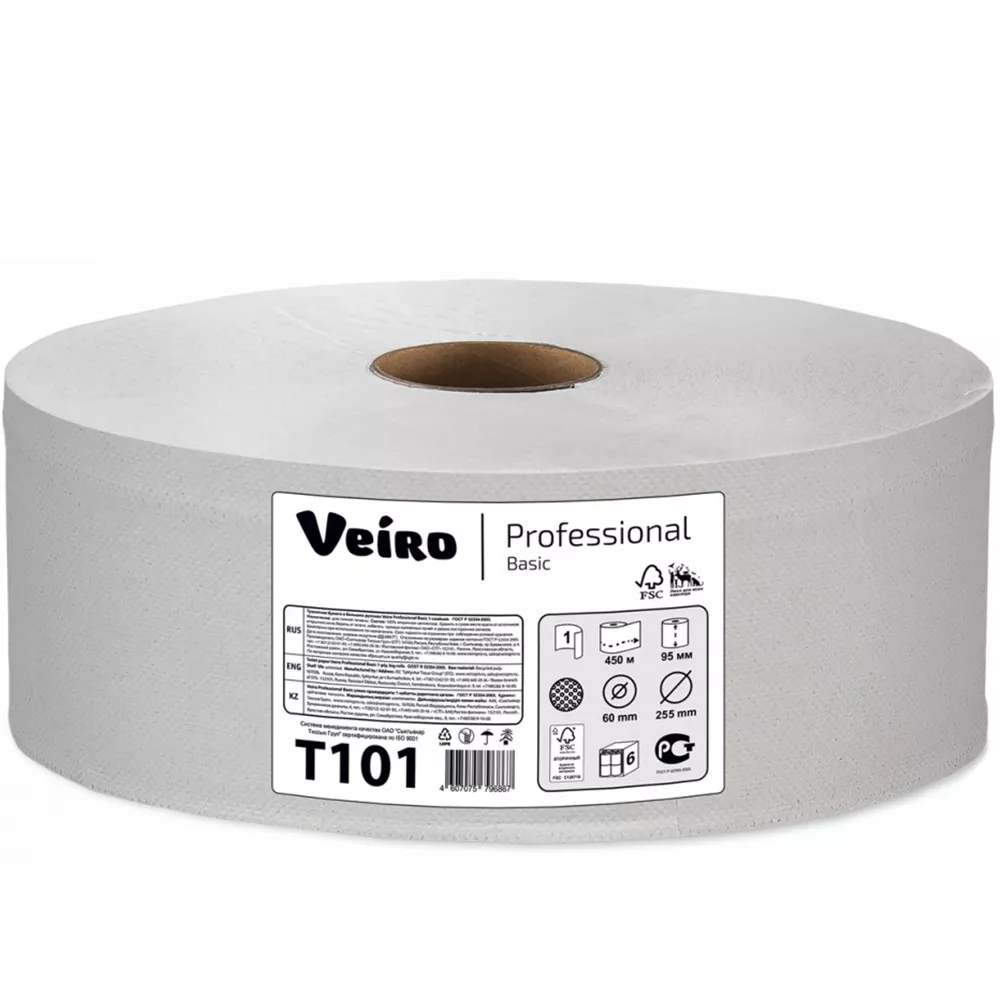 Туалетная бумага «Linia Veiro» Prof Basic в больших рулонах 1сл 450 метров