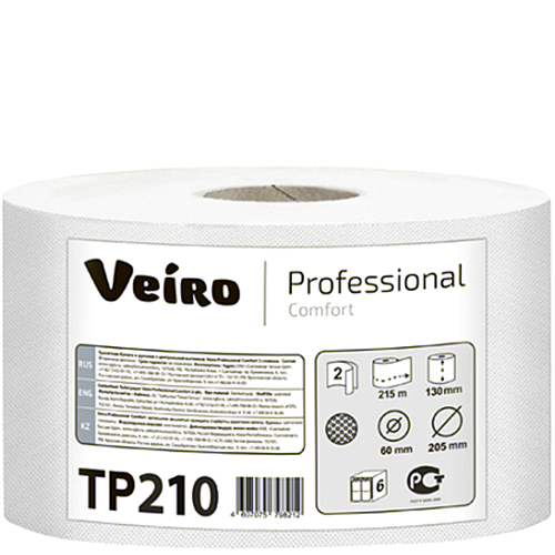 Туалетная бумага «Linia Veiro» Prof Comfort двухслойная белая с центральной вытяжкой 215 м.