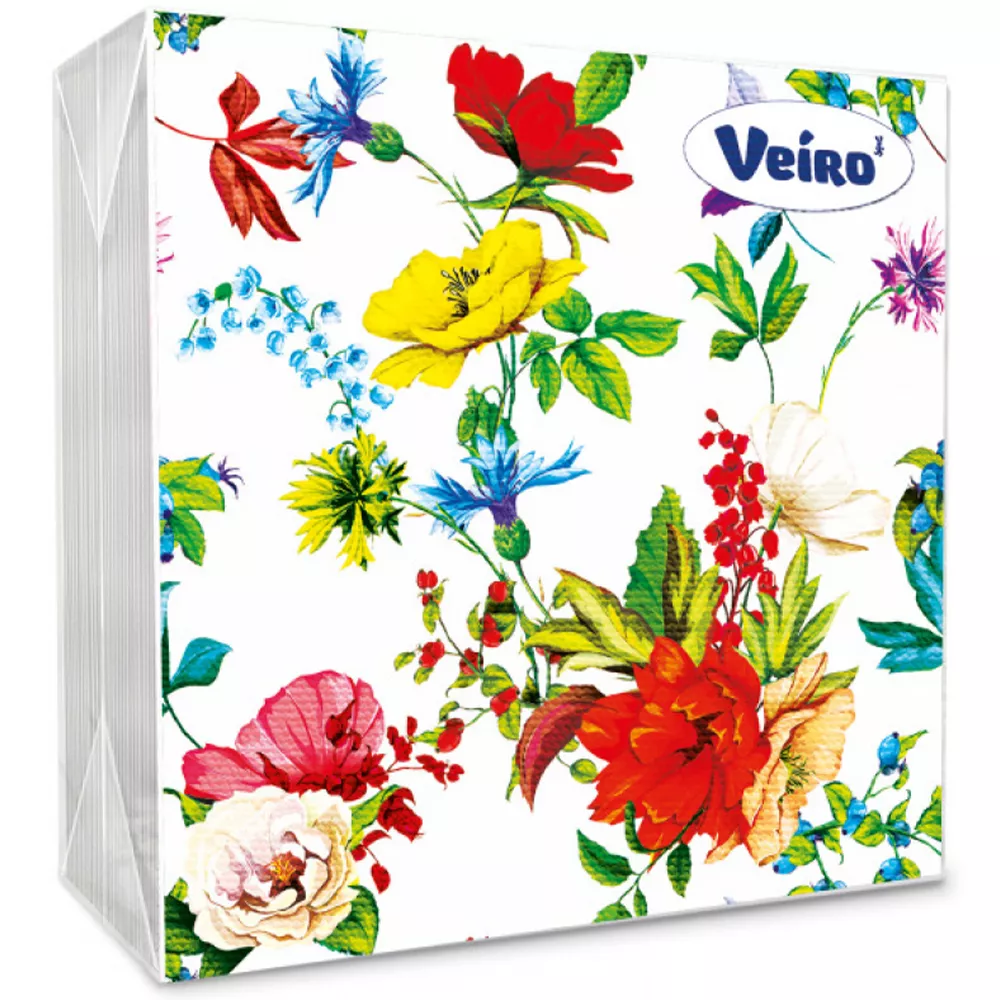 Салфетки столовые сервировочные «Veiro» Цветочная поляна трёхслойные 20 шт.