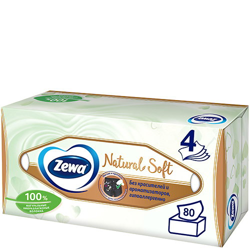 Салфетки косметические «Zewa» Natural Soft четырёхслойные 80 шт.