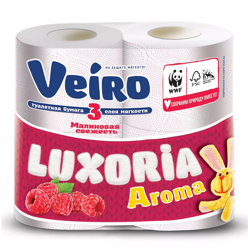 Туалетная бумага «Linia Veiro» Luxoria Aroma Малина трёхслойная 4 шт.
