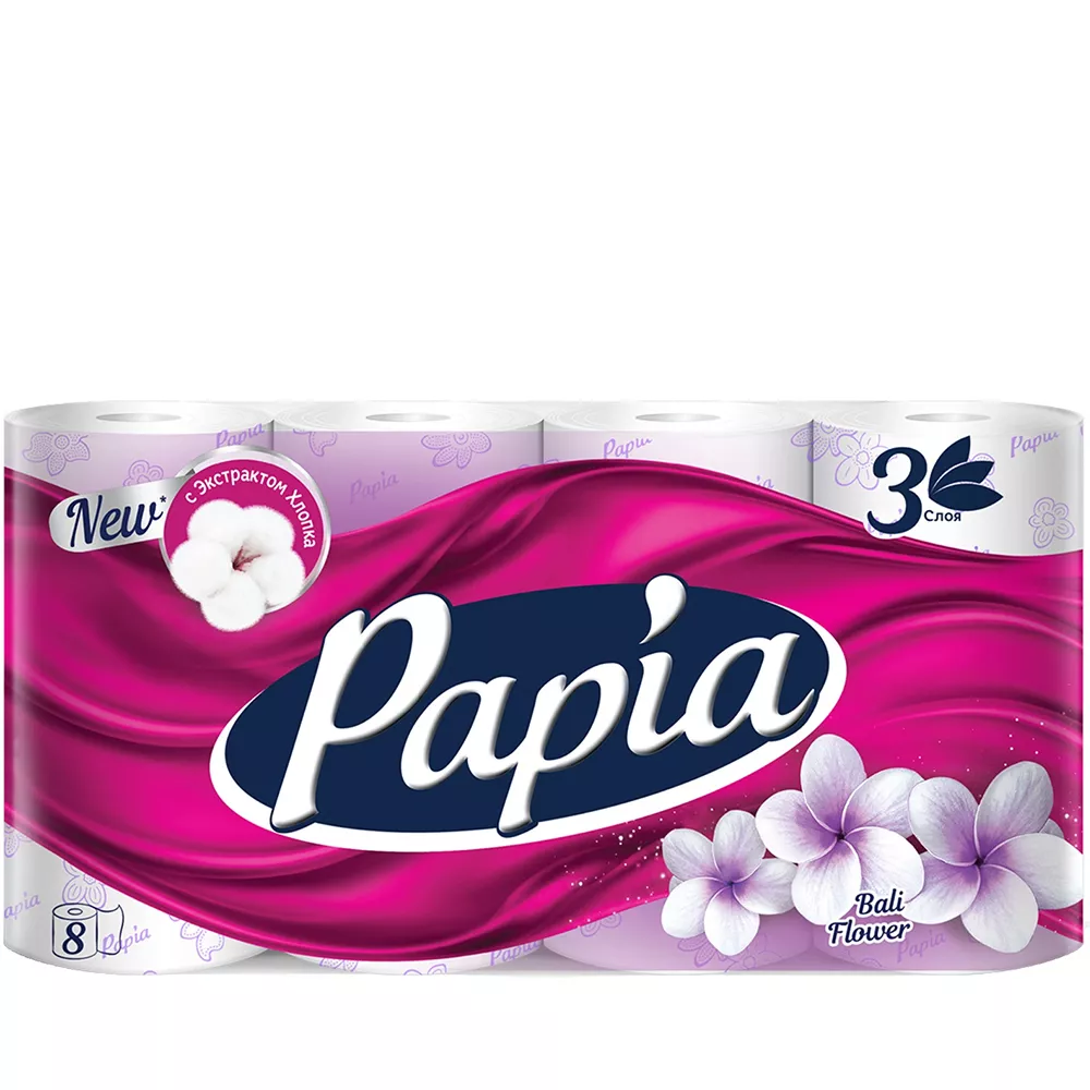 Туалетная бумага «Papia» Балийский Цветок трёхслойная 8 рулонов