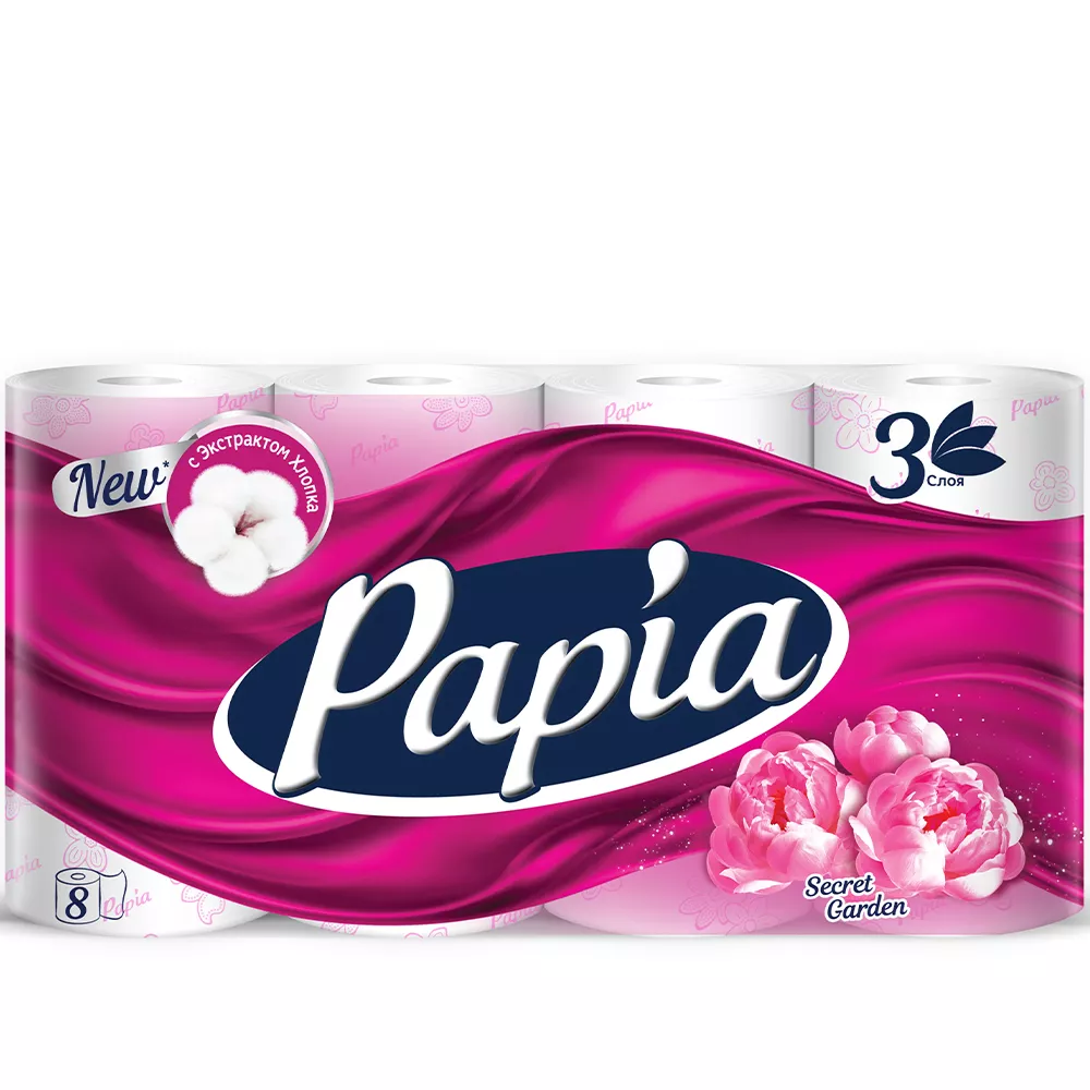 Туалетная бумага «Papia» Таинственный Сад трёхслойная 8 шт.