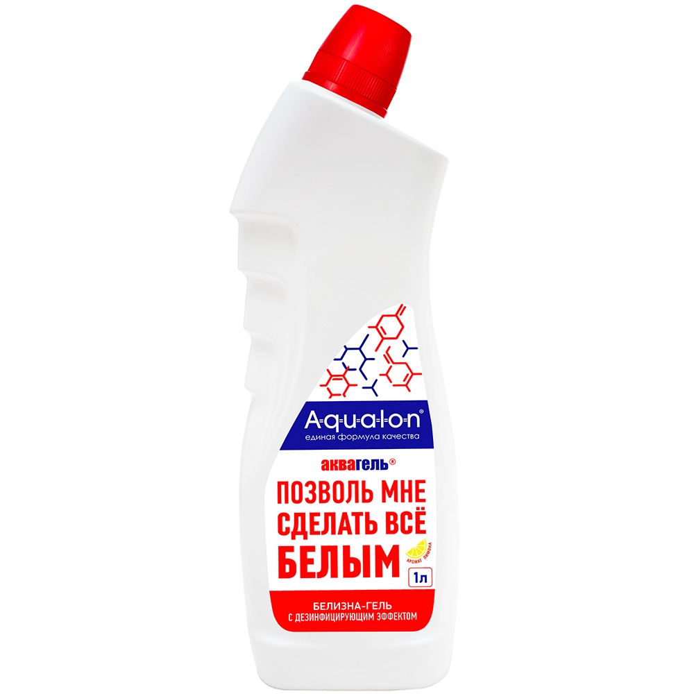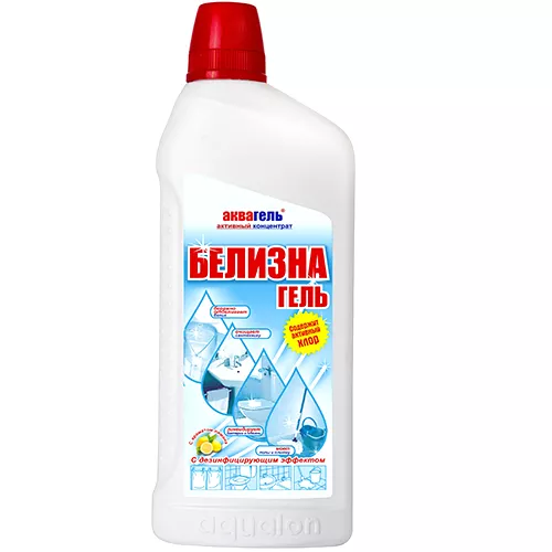 Белизна – гель Аквалон с ароматом лимона хорошо отбеливает, удаляет пятна с белых изделий из льняных и хлопчатобумажных тканей, дезодорирует и дезинфицирует. Подходит для мытья эмалированной и фаянсовой посуды, полов, сантехники, облицовочной плитки, пластика, мусорных ведер.