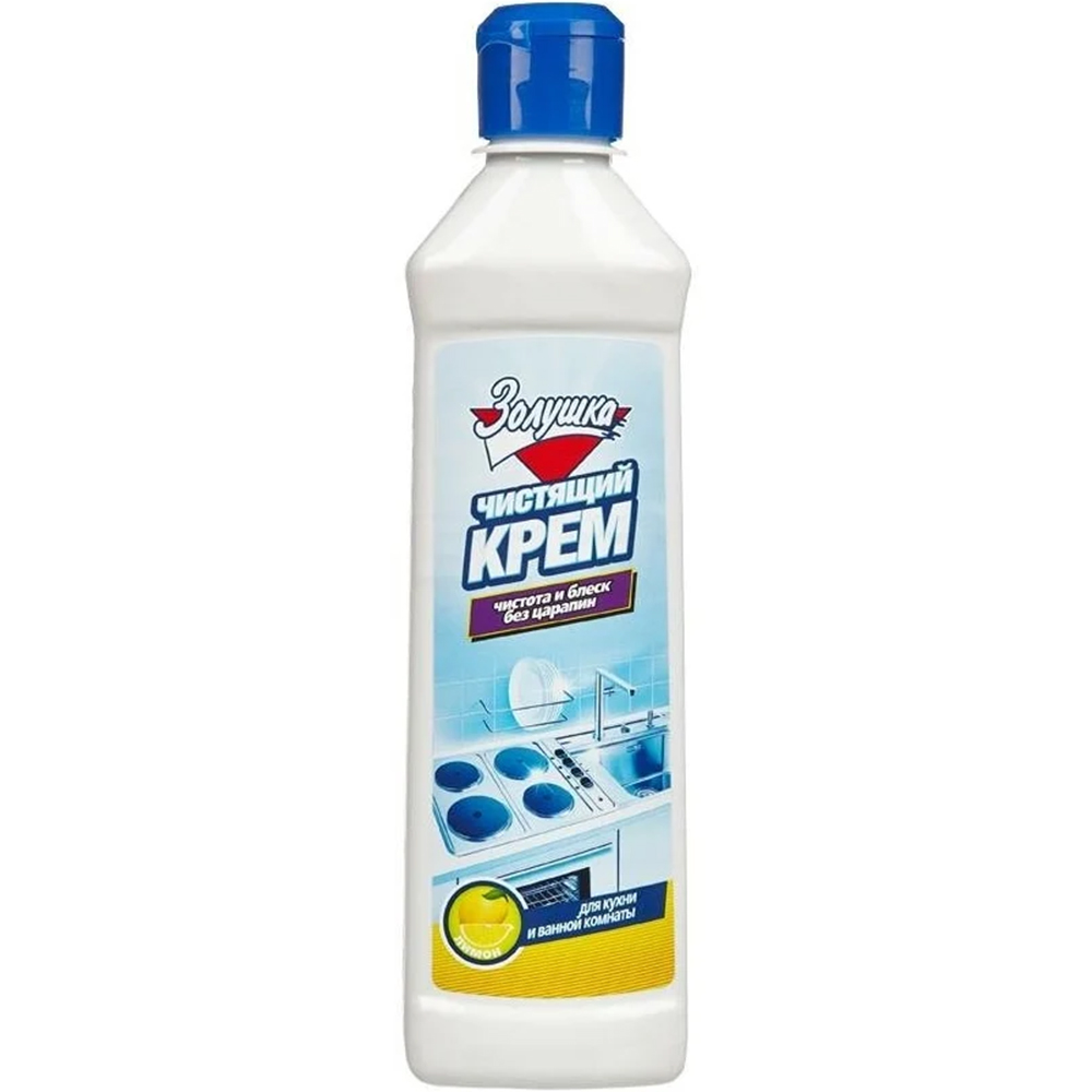 «Золушка» чистящий крем имеет природный минерал в своем составе, поэтому очищает поверхность до блеска, не оставляет разводов и царапин на поверхности, благодаря кремообразной консистенции.