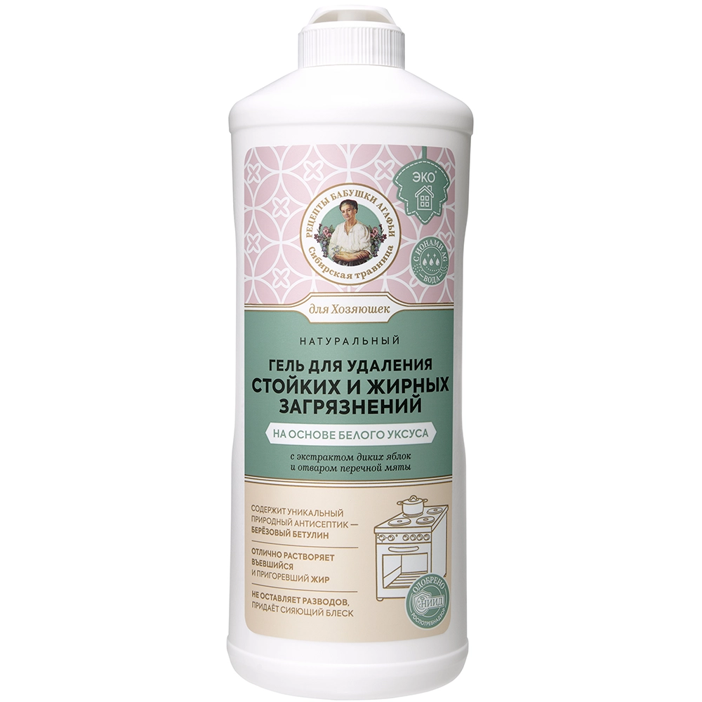 Гель для удаления стойких и жирных загрязнений «Рецепты бабушки Агафьи» Сибирская травница Белый уксус 500 мл.