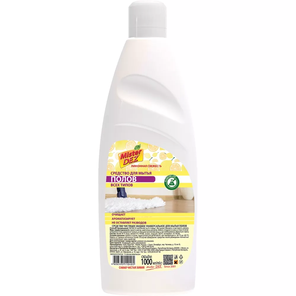 Средство для мытья полов «Mister Dez» Eco-Cleaning Лимонная свежесть 1 л.