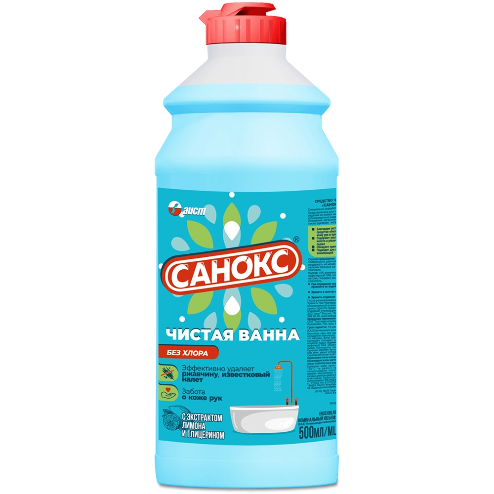 Чистящее средство Санокс предназначено для мытья раковин, ванн, унитазов, а  также мытья фаянсовых изделий, кафеля для удаления известковых налетов, ржавчины, жировых и органических загрязнений, также Санокс справляется с  неприятными запахами в ванной комнате.