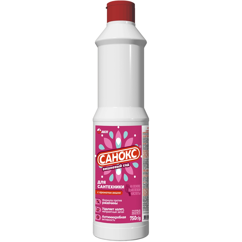 Удалить ржавчину, жир, мыльный осадок, застарелые известковые  и солевые отложения, а также въевшуюся грязь – поможет моющее средство для сантехники Санокс «Вишневый сад».  Средство  легко наносится и не требует особых усилий при чистке.