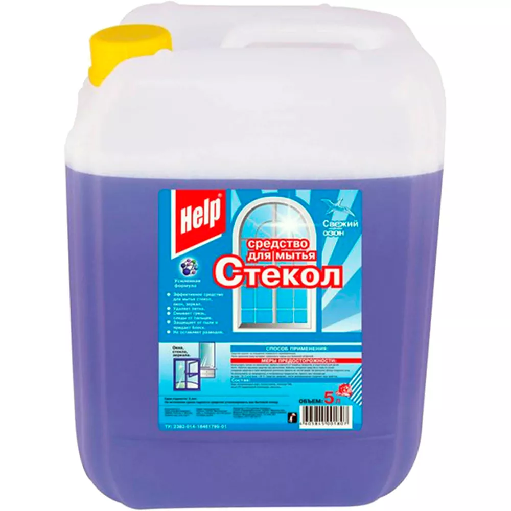 Моющее средство для стекол «Help» Свежий озон (ПЭТ) 5 л.