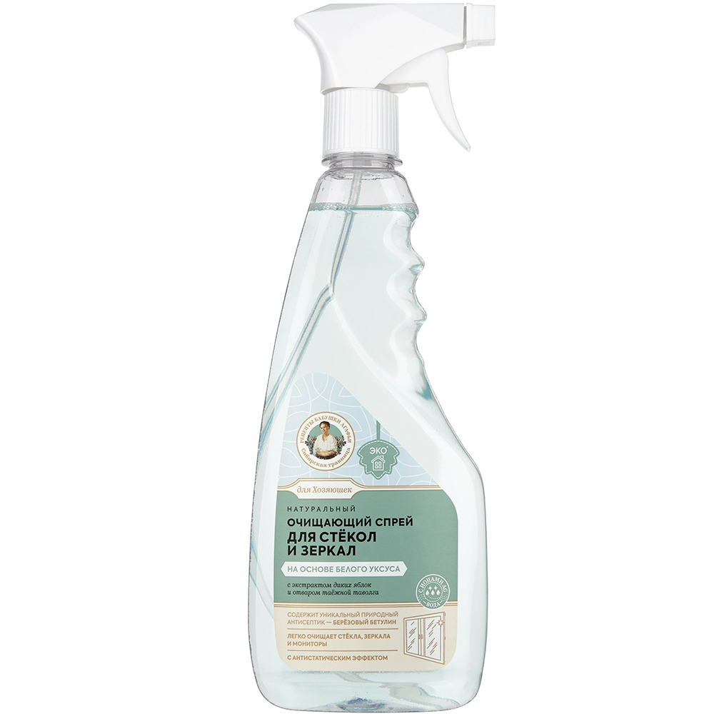 Очищающий спрей для стекол и зеркал «Рецепты бабушки Агафьи» Сибирская травница Белый уксус 450 мл.
