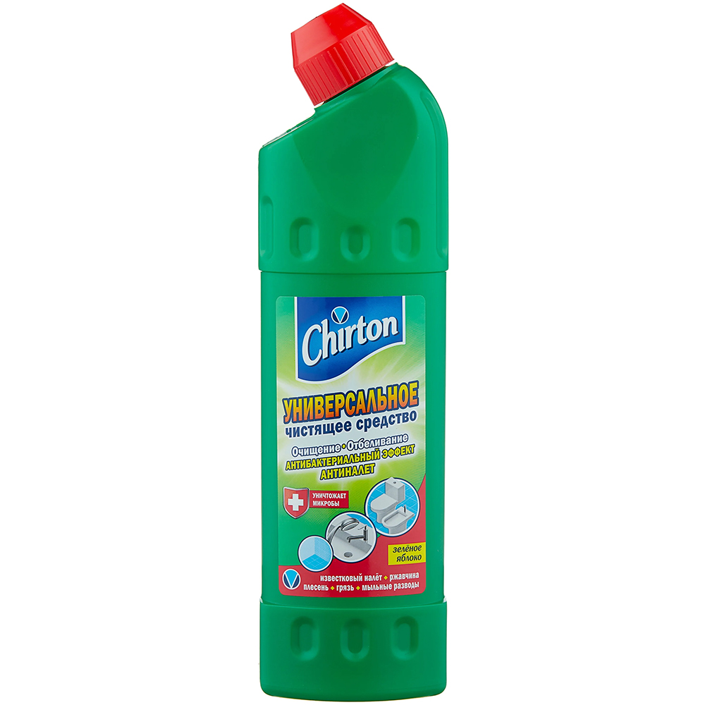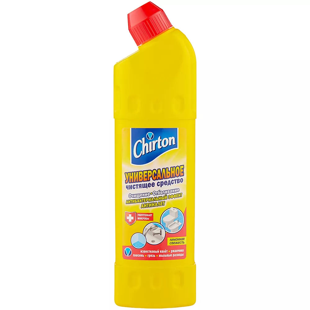 Универсальные чистящие средства от производителя Chirton включают в себя эффективный уход за чистотой ванны, унитаза, раковины, кафеля, плит и и любых других твердых поверхностей. Средство превосходно удаляет ржавчину, серый налет, жир, плесень, въевшиеся пятна и мыльные подтеки, а также прекрасно дезинфицирует и устраняет неприятные запахи.