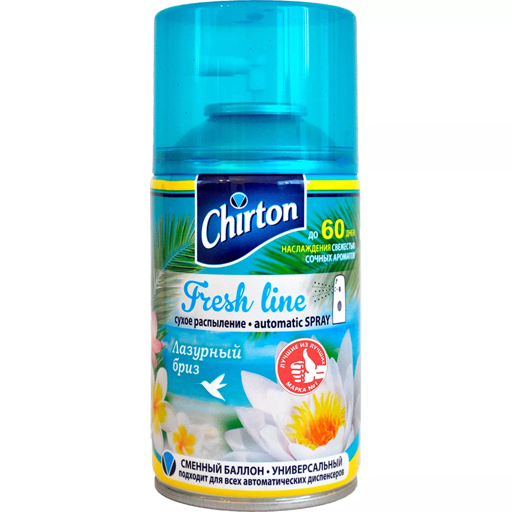 Автоматические освежители воздуха Чиртон Фреш Лайн предназначены для устранения неприятных запахов в различных помещениях. Подходят в качестве сменного баллона для автоматического освежителя. Чиртон Фреш Лайн с широкой палитрой позволяет подобрать аромат, подходящий Вашему настроению. Яркие новые ароматы создают особую неповторимую атмосферу в Вашем доме, сохраняя свежесть. Особая формула борьбы с неприятными запахами не маскирует их за ароматом, а полностью устраняет.