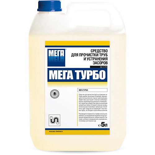 Средство для прочистки труб и устранения засоров «Мега» Турбо 5 л.