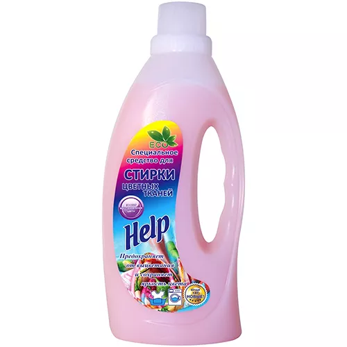 Компания предоставляет огромный выбор товаров из линейки Help для стирки различных видов тканей: черных и темных, деликатных и шерсти, белых, цветных, а также детского белья. Даже при ежедневных стирках Ваша одежда сохранит былую яркость цвета, будет оставаться свежей и выглядеть на все 100%. Специальное жидкое средство для стирки Хэлп предназначено для использования в воде абсолютно любой жесткости и подходит не только для тканей из синтетики, но и изделий из льна, хлопка, смешанных тканей. Средства Help не содержат такие сильнодействующие вещества как хлор и благодаря этому структура волокна сохраняет свою целостность, а цвет вещей остается ярким и насыщенным.