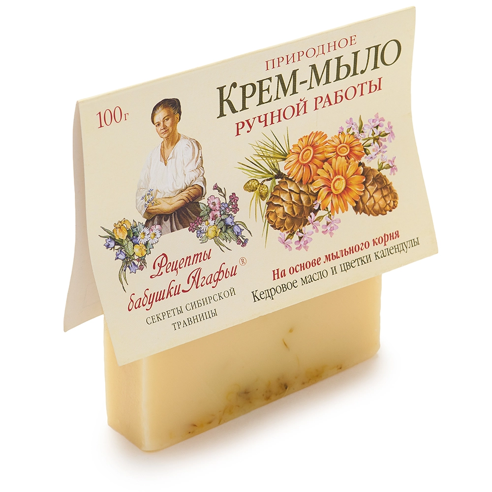Крем-мыло рецепты бабушки Агафьи состоит из рецептуры составленной сибирской травницей Агафьей Ермаковой, которая с детства изучала свойства трав и растений, а также унаследовала знания о них от своей матери и бабушки.