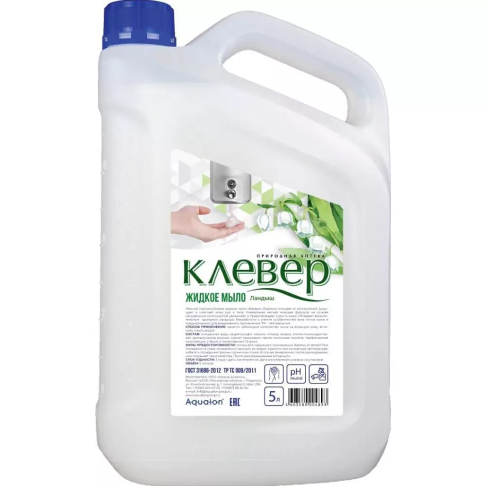 Жидкое мыло Клевер также как и другие серии изготовлено из высококачественного сырья с использованием натуральных компонентов. Это отличное соотношение цены и качества. Средство имеет приятный аромат, хорошо образует пену и легко смывается водой. Выпускается в трех ароматах: яблоко, ландыш и целебные травы.