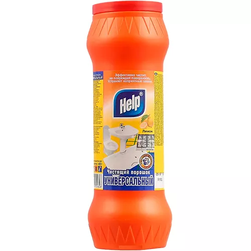 Порошок чистящий HELP Универсальный Лимон создан для безупречного удаления загрязнений с посуды и кафеля. Средство без труда устраняет пригоревшую пищу, жир, мыльный налет и пятна. Чистящий порошок с содой не оставляет царапин и разводов на поверхностях, подходит для чистки сантехники. Лимонный аромат наполнит свежестью помещение и подарит хорошее настроение.