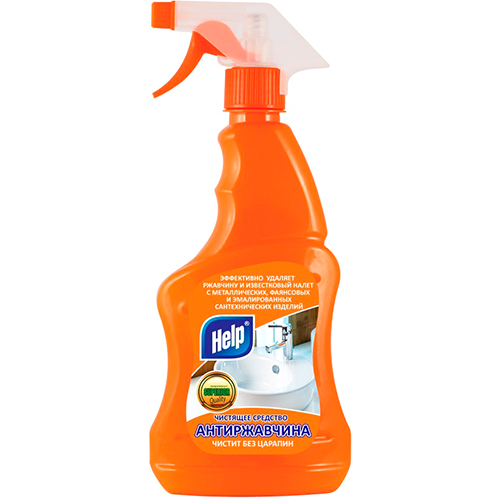 Чистящее средство Антиржавчина Help создано для поддержания порядка на кухне. Средство не царапает поверхность благодаря отсутствию в составе абразивных веществ. Help устраняет нагар и масложировые загрязнения с поверхностей, не оставляет разводов. Можно также использовать для кафеля, кухонной мебели, столовых приборов, хромированных и никелированных поверхностей.