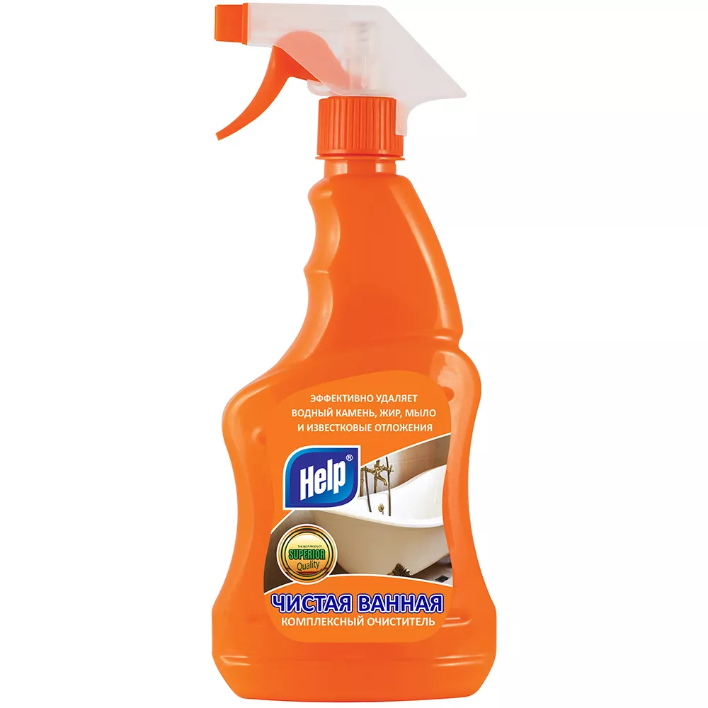 Чистящее средство Help Чистая ванна создано для ухода за сантехникой. Средство хорошо очищает поверхности ванны, душевых кабин, раковин и кранов от водного камня, известковых отложений, мала и ржавчины. Дарит свежесть, блеск и безупречную чистоту, наполняет помещение уютом.
