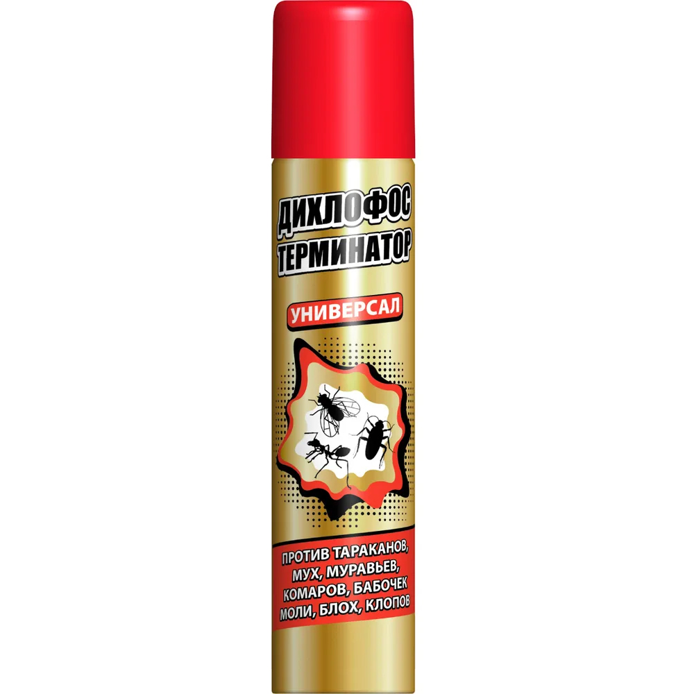 Аэрозоль «Убойная сила» универсальный подходит для уничтожения всех летающих и ползающих насекомых (комаров, мух, тараканов, моли). На обработанных поверхностях после аэрозоля создается защитный барьер, и насекомые гибнут в течение 7 недель. Средство не оставляет после себя запаха, липких и видимых следов. «Дихлофос» помогает бороться со всеми видами насекомых: мухами, тараканами, молью, клопами, муравьями, бабочками. Без запаха. Защитный барьер средства действует на протяжении двух недель.
