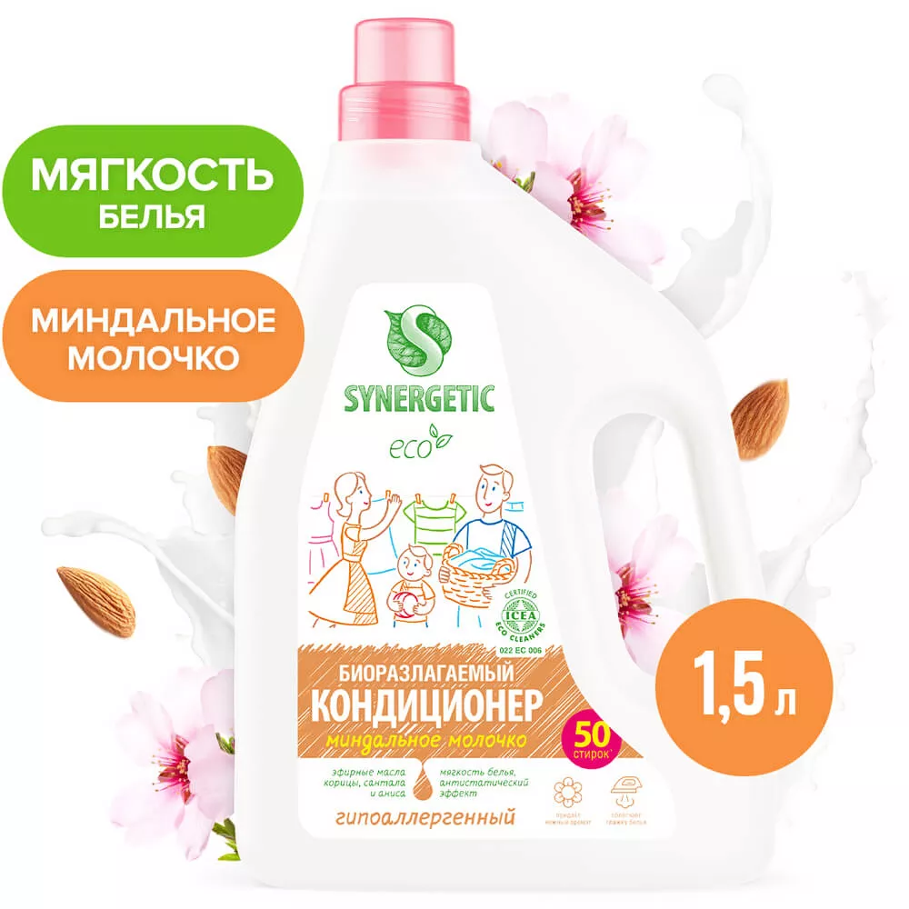 Кондиционер для белья «Synergetic» Миндальное молочко 1,5 л.