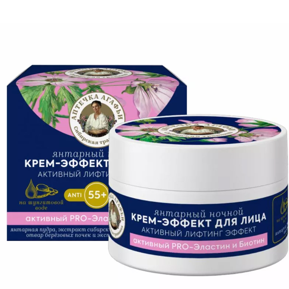 Ночной крем-эффект для лица «Аптечка Агафьи» Янтарный 55+ 50 мл.