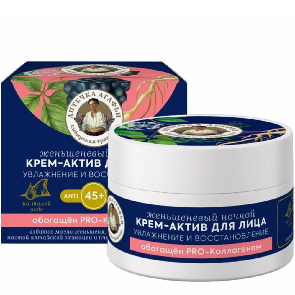 Ночной крем-актив для лица «Аптечка Агафьи» Женьшеневый 45+ 50 мл.