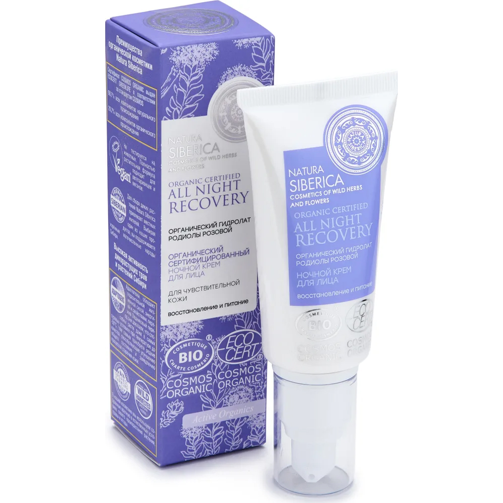 Ночной крем для лица «Natura Siberica» Cosmos Комфорт Органический для чувствительной кожи 50 мл.
