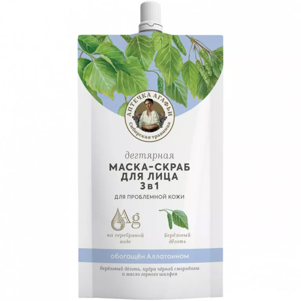 Дегтярная маска-скраб для лица «Аптечка Агафьи» для проблемной кожи 3в1 100 мл.