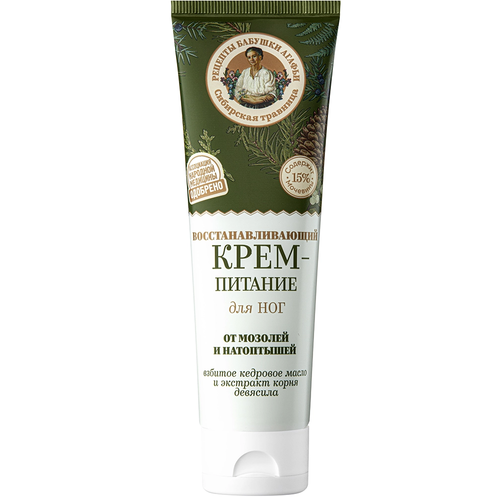 Кремы для ног рецепты бабушки Агафьи созданы по рецептам сибирской травницы Агафьи Ермаковой. В состав кремов входят экстракты таких трав и растений как сосновая живица, мята лимонная, полынь белая, кедровое масло, бархат амурский, подорожник, конский каштан, таволга, мелисса- все они обладают особыми свойствами, которые воздействуя на кожу, делают ее мягкой, гладкой и эластичной.