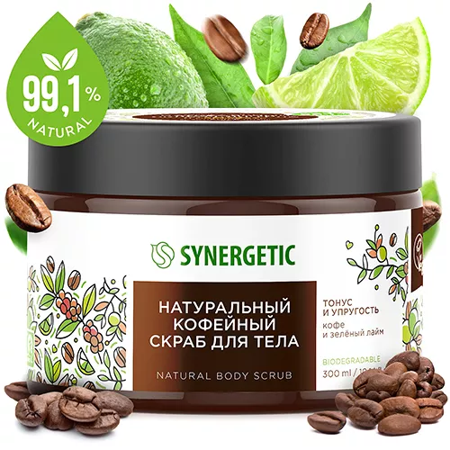 Кофейный скраб для тела «Synergetic» Тонус и упругость Кофе и зеленый лайм 300 мл.