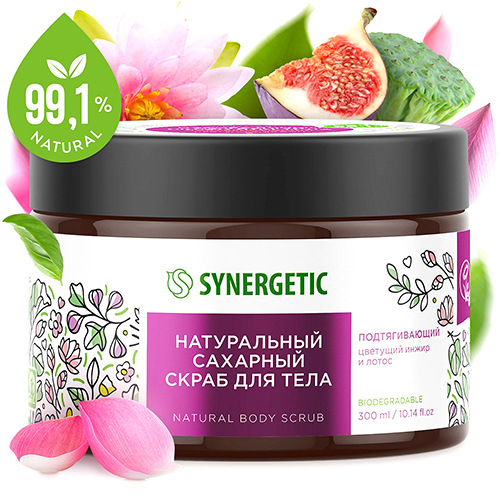 Сахарный скраб для тела «Synergetic» Цветущий инжир и лотос 300 мл.