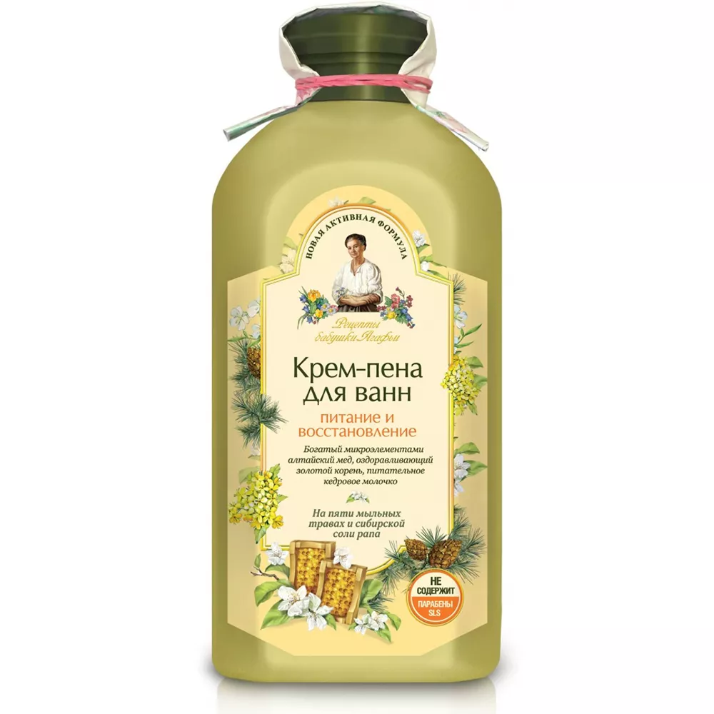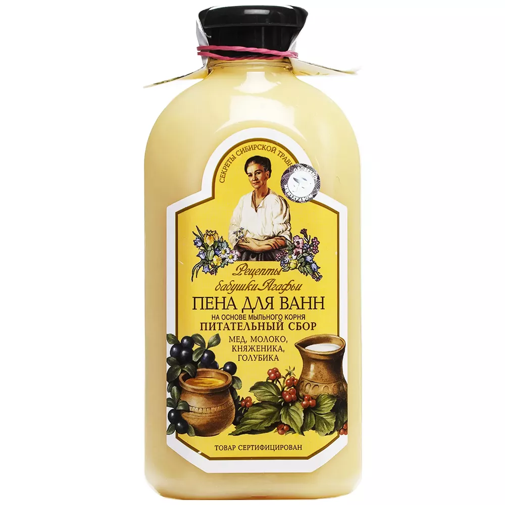 Пены для ванн рецепты бабушки Агафьи созданы на основе мыльного корня, который представляет собой более щадящую моющую основу, создающую обильную пену.