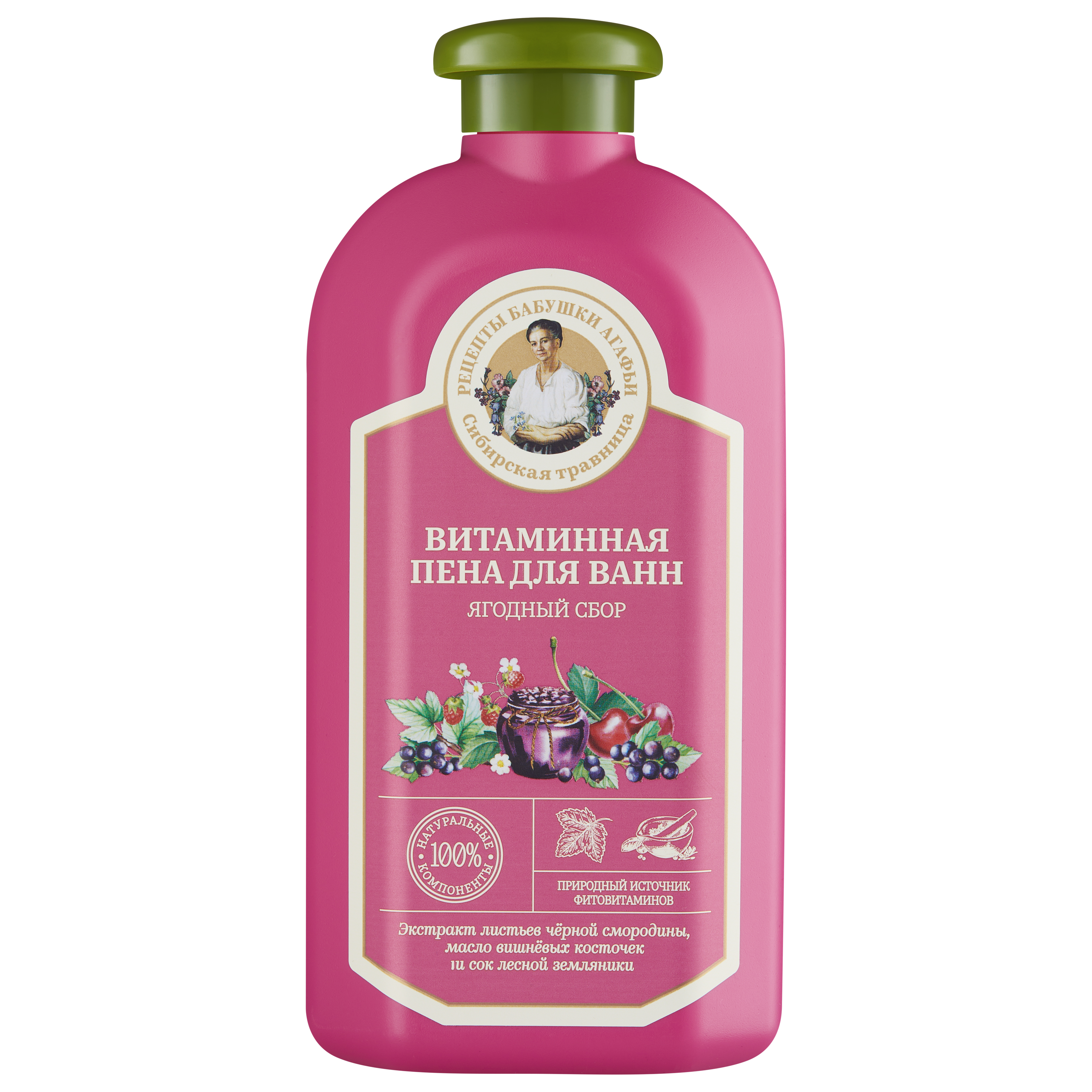 В состав пены для ванн рецепты бабушки Агафьи входят экстракты лимонника, женьшеня, зверобоя, шалфея, тысячелистника, голубики и многих других трав и растений, которые придают коже мягкость, шелковистость и сияние.