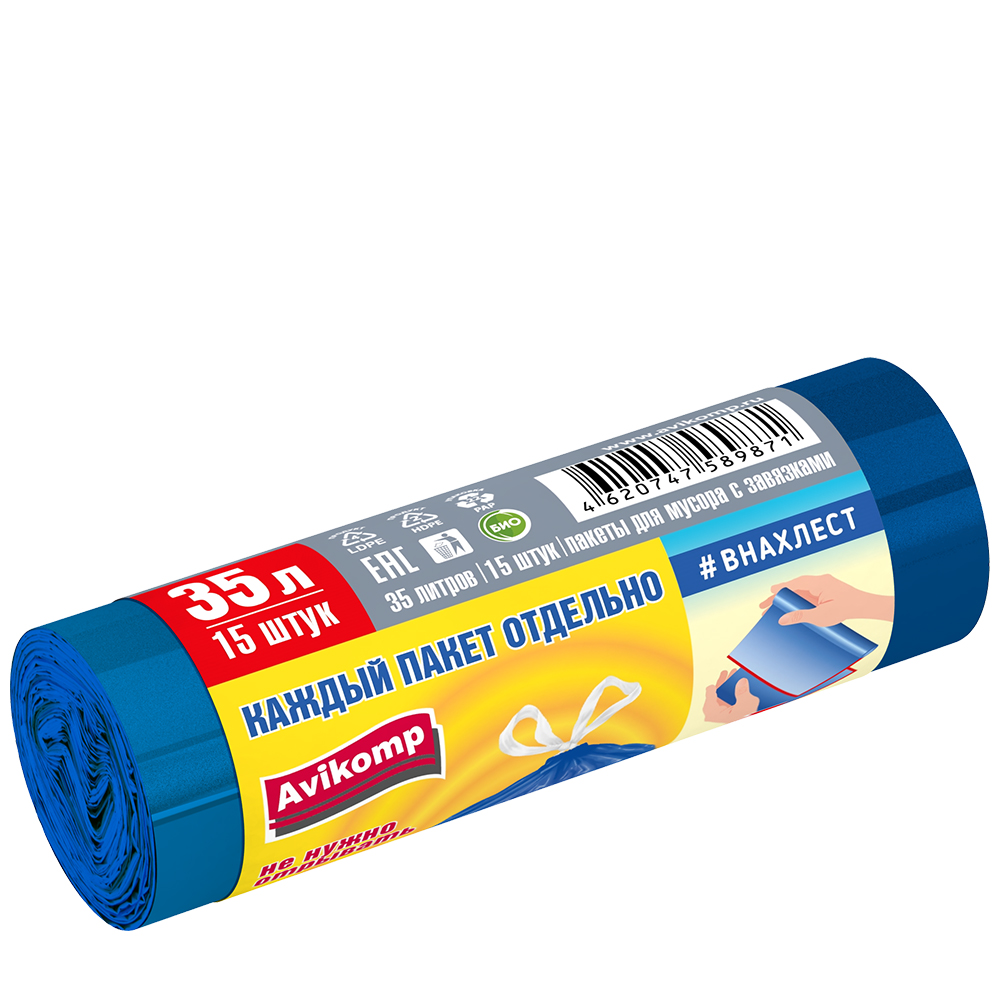 Пакеты для мусора «Авикомп» #ВНАХЛЕСТ с завязками Prestige ПСД голубые 35 л 15 шт.