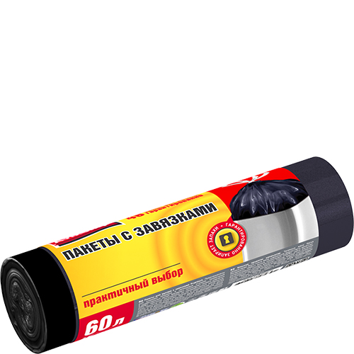 Пакеты для мусора «Авикомп» с завязками Чёрные 60 л. 15 шт.