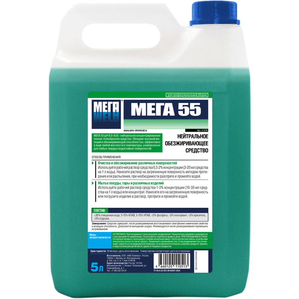 МЕГА-55 Высококонцентрированное пенное обезжиривающее средство для мытья посуды и кухонного оборудования. Универсальное