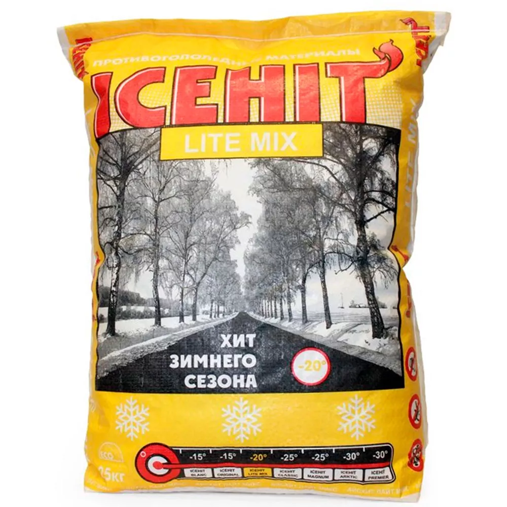 Противогололедный реагент «Icehit» Lite mix (применяется при температуре до -25 градусов) 25 кг.