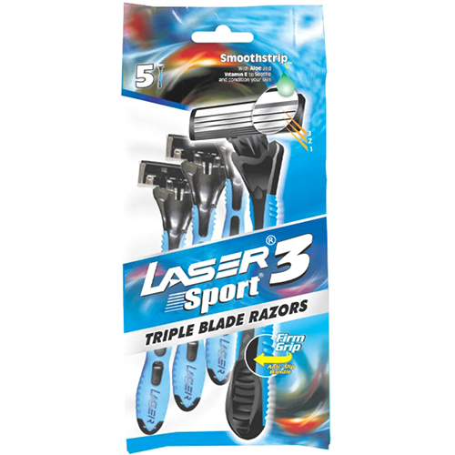Одноразовые бритвы «Лазер» Спорт3 с 3 лезвиями 5 шт.