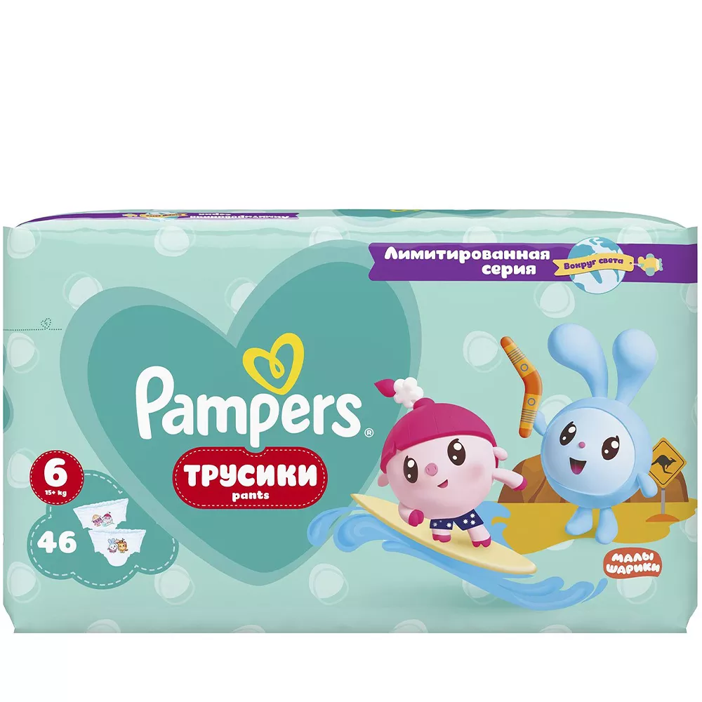 Подгузники-трусики «Памперс» Pants Малышарики Экстра лардж +15 кг 46 шт.