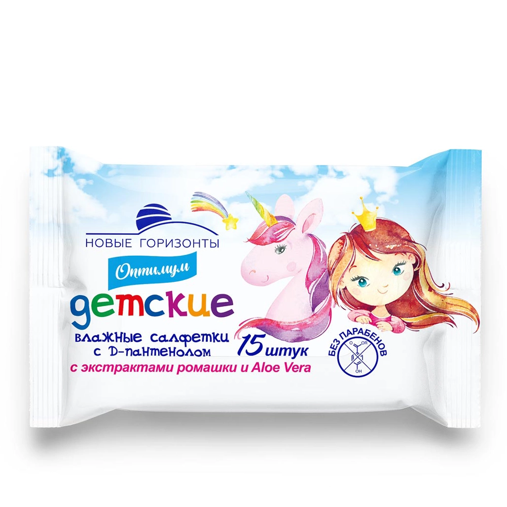 Влажные салфетки «Новые горизонты (Русалочка)» Optimum Освежающие с ароматом ромашки 15 шт.
