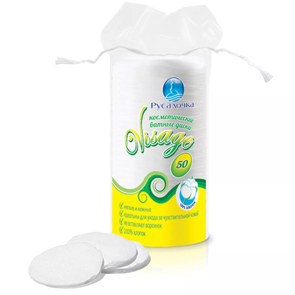 Бережную заботу о Вашей коже дарят ватные диски Русалочка, которые имеют высокую впитывающую основу. Диски не оставляют волокон на коже, не расслаиваются и не вызывают аллергических реакций кожи.