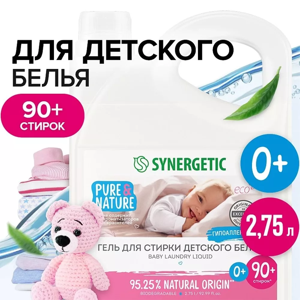Детские гели и порошки для стирки Synergetic